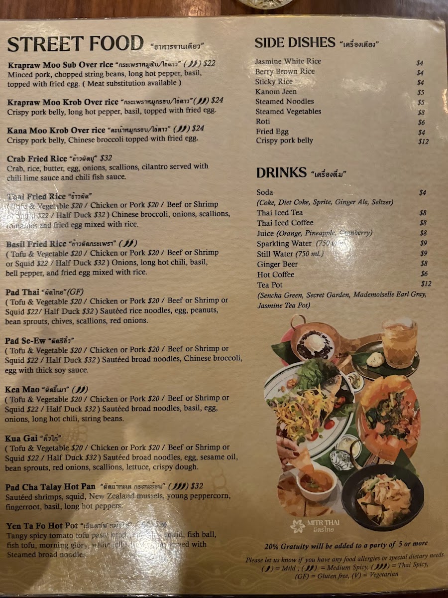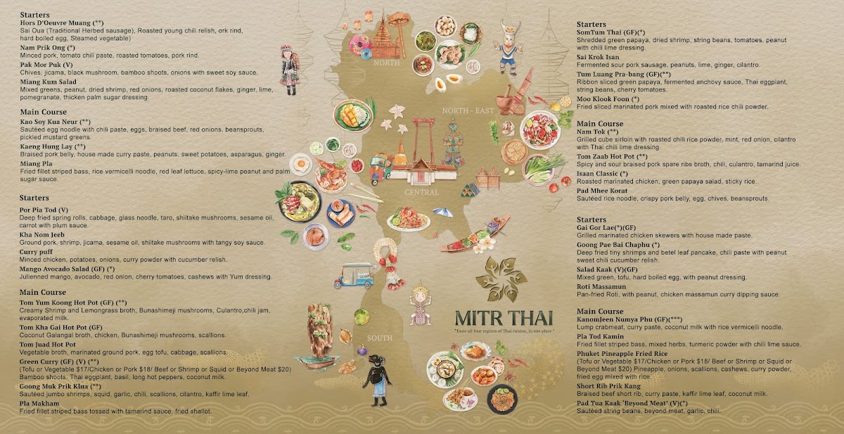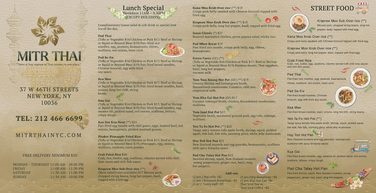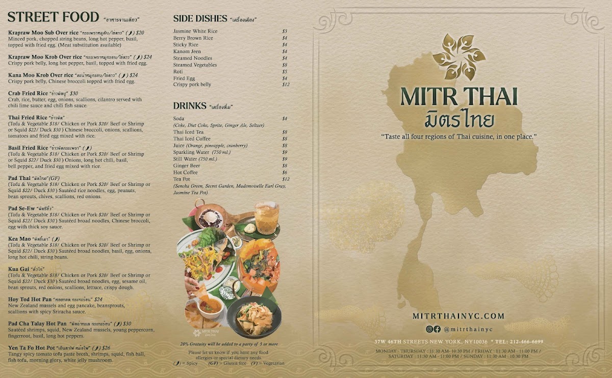 The menu at Mitr Thai Restaurant offers a thoughtful blend of authentic Thai dishes that reflect the diverse flavors of Thailand’s southern and central culinary regions. It’s the kind of menu that invites diners to explore rich, comforting meals alongside lighter, flavorful starters and satisfying snacks. Whether you’re looking for a casual bite during a lively evening or a more focused dining experience, the selection easily complements the warm and inviting atmosphere of the restaurant.